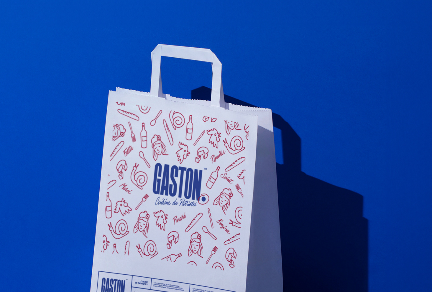 Réalisation de l'identité visuelle de la marque Gaston, enseigne spécialisée dans la gastronomie francaise & de la livraison à domicile. Creation of a visual identity for Gaston, a brand specializing in French gastronomy and home delivery.